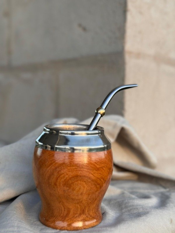 La forma ergonómica de este mate garantiza un agarre cómodo, perfecto para disfrutar de momentos prolongados con amigos o familiares. Su acabado brillante no solo resalta la belleza natural de la madera, sino que también proporciona una protección adicional, asegurando su durabilidad.